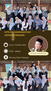 Pengajian triwulan ini menjadi salah satu agenda rutin sekolah yang diharapkan mampu menumbuhkan semangat religius dan kebersamaan di kalangan guru serta karyawan MTs Muhammadiyah Gedongtengen. Melalui kegiatan ini, diharapkan seluruh warga sekolah dapat terus meneladani nilai-nilai Islam dalam melaksanakan tugas dan tanggung jawab sehari-hari.